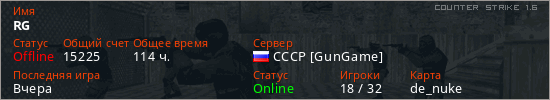 Последний раз был в сети Вчера Игрок с таким ником замечен на 18 серверах