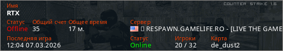 Играет на Counter Strike 1.6 сервере. Страна: СШАПервый раз замечен 07:30 07.02.2026