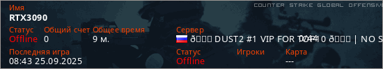Играет на Counter Strike Global Offensive сервере. Страна: РоссияПервый раз замечен 08:18 25.09.2025