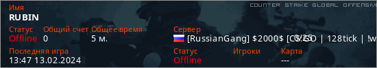 Играет на Counter Strike Global Offensive сервере. Страна: РоссияПервый раз замечен 13:43 13.02.2024