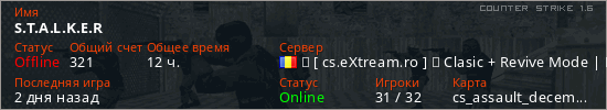 Играет на Counter Strike 1.6 сервере. Страна: РумынияПервый раз замечен 23:03 19.12.2024