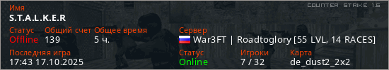 Последний раз был в сети 17:43 17.10.2025 Игрок с таким ником замечен на 41 сервере