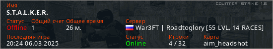 Играет на Counter Strike 1.6 сервере. Страна: РоссияПервый раз замечен 20:45 09.06.2021
