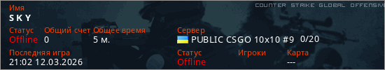 Играет на Counter Strike Global Offensive сервере. Страна: УкраинаПервый раз замечен 20:52 12.03.2026