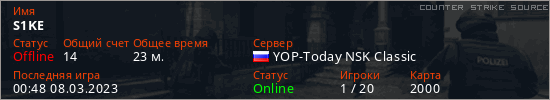Играет на Counter Strike Source сервере. Страна: РоссияПервый раз замечен 00:28 08.03.2023