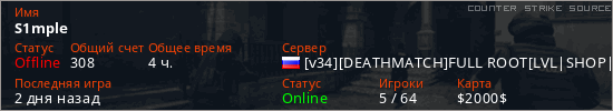 Играет на Counter Strike Source сервере. Страна: РоссияПервый раз замечен 15:35 21.02.2023