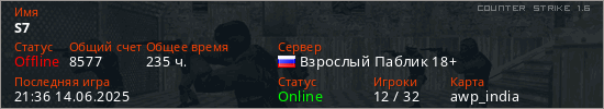 Играет на Counter Strike 1.6 сервере. Страна: РоссияПервый раз замечен 00:08 22.01.2020