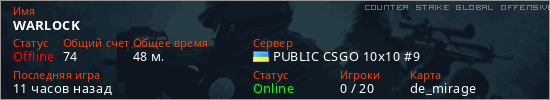 Играет на Counter Strike Global Offensive сервере. Страна: УкраинаПервый раз замечен 18:58 06.03.2026