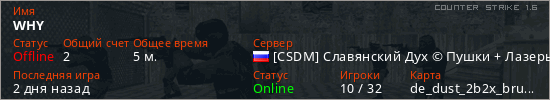Последний раз был в сети 2 дня назад Игрок с таким ником замечен на 14 серверах