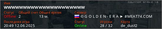 Играет на Counter Strike 1.6 сервере. Страна: РоссияПервый раз замечен 15:41 08.04.2024