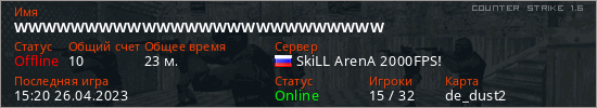 Последний раз был в сети 15:20 26.04.2023 Игрок с таким ником замечен на 7 серверах