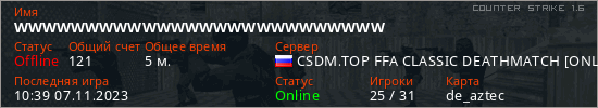 Играет на Counter Strike 1.6 сервере. Страна: РоссияПервый раз замечен 10:37 07.11.2023