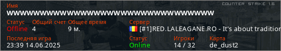 Играет на Counter Strike 1.6 сервере. Страна: РумынияПервый раз замечен 18:16 16.05.2024