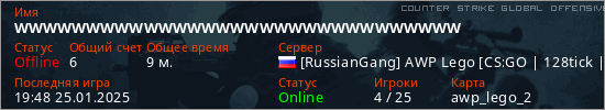 Играет на Counter Strike Global Offensive сервере. Страна: РоссияПервый раз замечен 17:26 25.01.2025