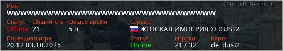 Играет на Counter Strike 1.6 сервере. Страна: РоссияПервый раз замечен 17:24 04.11.2021