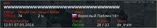 Играет на Counter Strike 1.6 сервере. Страна: РоссияПервый раз замечен 18:29 22.09.2023