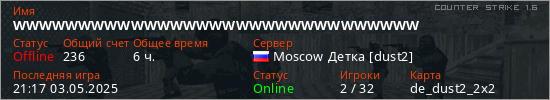 Последний раз был в сети 21:17 03.05.2025 Игрок с таким ником замечен на 33 серверах