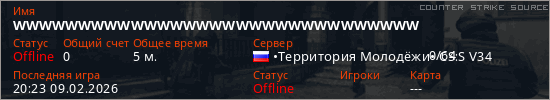 Играет на Counter Strike Source сервере. Страна: РоссияПервый раз замечен 20:14 09.02.2026