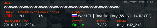 Играет на Counter Strike 1.6 сервере. Страна: РоссияПервый раз замечен 17:54 31.05.2022