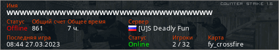 Последний раз был в сети 08:44 27.03.2023 Игрок с таким ником замечен на 33 серверах