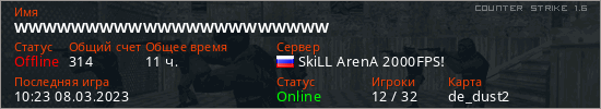 Играет на Counter Strike 1.6 сервере. Страна: РоссияПервый раз замечен 09:57 02.03.2023