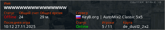 Играет на Counter Strike 1.6 сервере. Страна: РоссияПервый раз замечен 16:30 05.10.2024