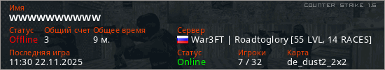 Последний раз был в сети 11:30 22.11.2025 Игрок с таким ником замечен на 15 серверах