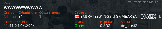 Играет на Counter Strike 1.6 сервере. Страна: ВеликобританияПервый раз замечен 09:09 06.10.2021