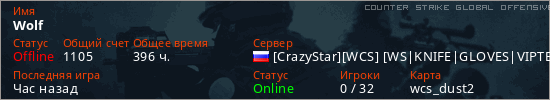 Играет на Counter Strike Global Offensive сервере. Страна: РоссияПервый раз замечен 18:50 28.10.2023