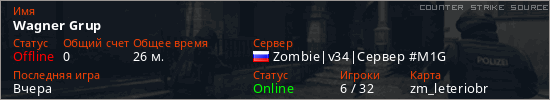 Играет на Counter Strike Source сервере. Страна: РоссияПервый раз замечен 18:00 11.12.2025
