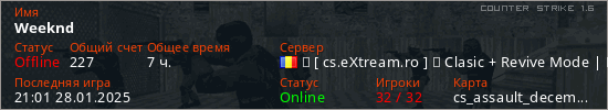 Играет на Counter Strike 1.6 сервере. Страна: РумынияПервый раз замечен 11:36 11.01.2025