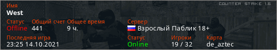 Играет на Counter Strike 1.6 сервере. Страна: РоссияПервый раз замечен 17:53 11.10.2021