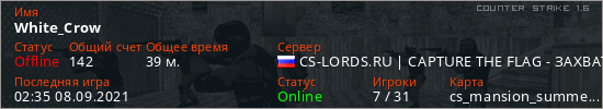 Играет на Counter Strike 1.6 сервере. Страна: РоссияПервый раз замечен 01:59 08.09.2021