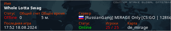 Играет на Counter Strike Global Offensive сервере. Страна: РоссияПервый раз замечен 17:48 18.08.2024