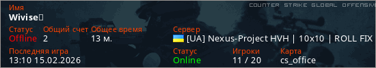 Играет на Counter Strike Global Offensive сервере. Страна: УкраинаПервый раз замечен 00:54 15.02.2026