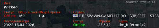 Играет на Counter Strike 1.6 сервере. Страна: СШАПервый раз замечен 23:05 09.04.2026