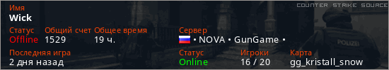 Играет на Counter Strike Source сервере. Страна: РоссияПервый раз замечен 02:34 12.03.2023