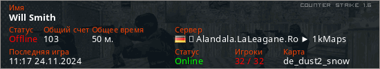Последний раз был в сети 11:17 24.11.2024 Игрок с таким ником замечен на 7 серверах