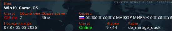 Играет на Counter Strike Global Offensive сервере. Страна: РоссияПервый раз замечен 11:11 08.01.2025
