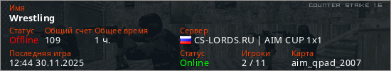 Играет на Counter Strike 1.6 сервере. Страна: РоссияПервый раз замечен 12:35 12.01.2025
