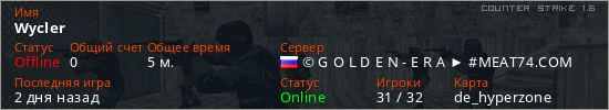 Играет на Counter Strike 1.6 сервере. Страна: РоссияПервый раз замечен 17:27 22.12.2025
