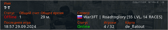 Последний раз был в сети 18:57 29.09.2024 Игрок с таким ником замечен на 12 серверах