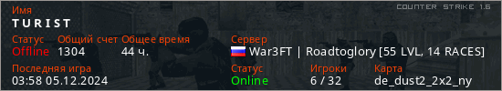 Играет на Counter Strike 1.6 сервере. Страна: РоссияПервый раз замечен 16:05 27.06.2021