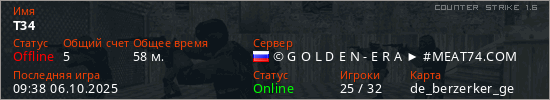 Последний раз был в сети 09:38 06.10.2025 Игрок с таким ником замечен на 19 серверах