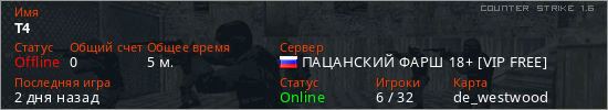 Последний раз был в сети Вчера Игрок с таким ником замечен на 4 серверах