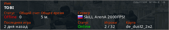 Играет на Counter Strike 1.6 сервере. Страна: РоссияПервый раз замечен 20:52 16.12.2025