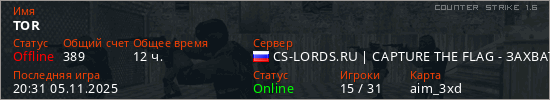 Последний раз был в сети 20:31 05.11.2025 Игрок с таким ником замечен на 23 серверах