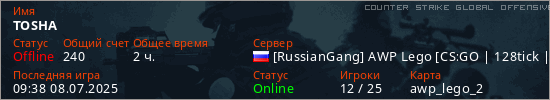 Играет на Counter Strike Global Offensive сервере. Страна: РоссияПервый раз замечен 09:21 06.05.2025