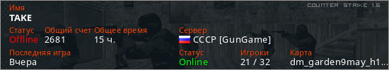 Играет на Counter Strike 1.6 сервере. Страна: РоссияПервый раз замечен 15:38 03.11.2023