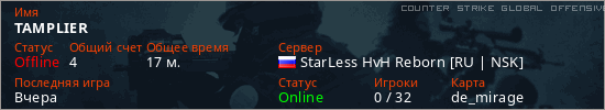 Играет на Counter Strike Global Offensive сервере. Страна: РоссияПервый раз замечен 18:17 15.12.2025